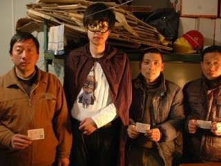 北京好人炯炯俠奮戰了一天終於幫訂不到車票的民眾買到車票,「任務」完成後合影留念。